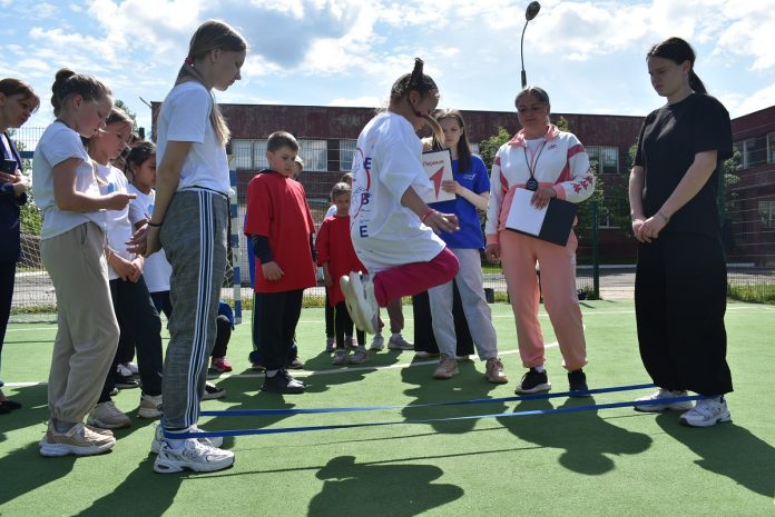 Ребята соревновались между собой в играх «Классики», «Вышибалы» и прыжках через резинку. Победила команда из Песочни.
