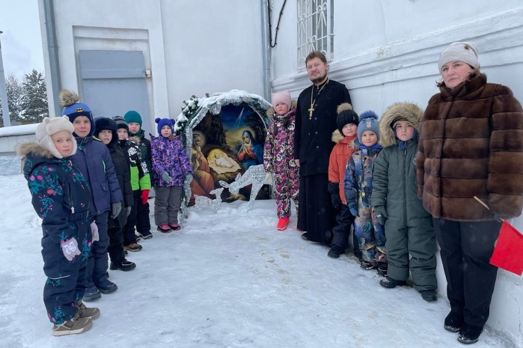 «Ребята с большим интересом разглядывали иконы, посмотрели композицию яслей с младенцем около храма, внимательно слушали рассказы. Благодарим игумена Феодорита за познавательную экскурсию».